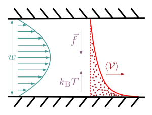 If nonuniform flow profile carries these solutes through the channel, their elution times will differ. Since each species has a different concentration distribution, each species samples the velocity distribution with a different weighting and so has a different mean velocity. Solute particles near the wall are subject to slower flow than particles near the centre; therefore, samples with a mean height close to the wall are carried along with a slower average velocity than samples with a larger mean height.